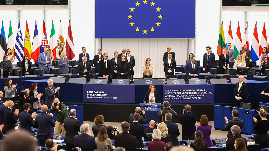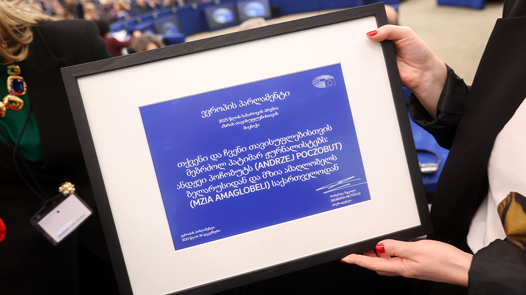 სტრასბურგში, ვეროპარლამენტის პრეზიდენტმა, რობერტა მეცოლამ 2025 წლის სახაროვის პრემია გადასცა საქართველოსა და ბელარუსში დაპატიმრებულ ჟურნალისტებს, მზია ამაღლობელსა და ანდჟეი პოჩობუტს. ჯილდო მათმა წარმომადგენლებმა მიიღეს.