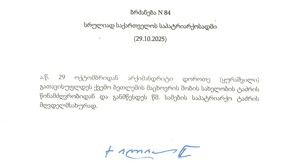 ეპარქიული კომისიის განცხადების გავრცელებიდან ნახევარ საათში გამოქვეყნდა ბრძანება, რომელსაც ილია მეორის ხელმოწერა აქვს.